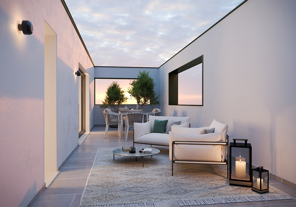 Via dei Tigli – Townhouse è il luogo in cui l’abitare si trasforma in benessere. In Zona Torraccia a Pesaro proponiamo sei esclusive unità immobiliari, immerse nel verde e progettate secondo i principi della bioarchitettura, dove ogni dettaglio è pensato per migliorare la qualità della vita. Due volumi architettonici dal design contemporaneo ospitano le residenze, connessi da un corpo centrale vetrato che, insieme al cilindro scala dotato di giardino pensile, definisce l’ingresso scenografico del complesso. Un landmark green che non è solo estetica, ma anche anima sostenibile dell’intero progetto.